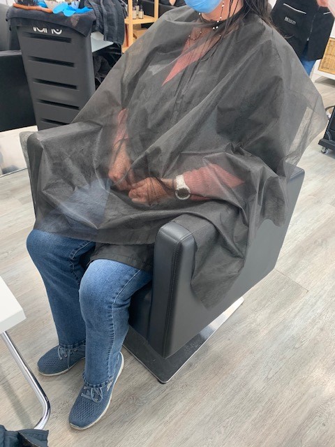Peinador capa de corte negra, desechable tejido tnt reciclado de una densidad de 20 gramos por metro cuadrado. Que garantiza la higiene y el agrado del cliente en el servicio de corte del cabello, con el fin de evitar la caída de cabellos sobre nuestro cliente. En la zona del cuello llevan unas cintas para la sujeción en el cliente, Las medidas peinador capa de corte negra son de 100 cms de ancho, por un largo de 120 cms. que cubren espalda y parte posterior del cliente